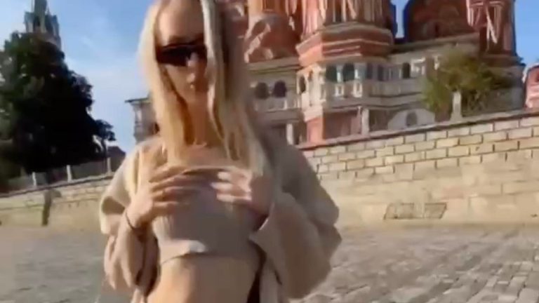 Lolita Bogdanova, 24, posted a photo of her exposed breasts in front of St. Basil’s Cathedral in Red Square in 2021.