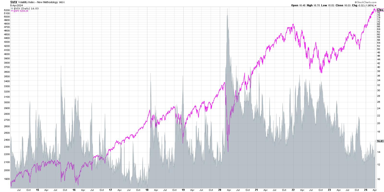 The VIX ended the week just above 16, bringing it to its highest level in 2024. What does this tell us about investor sentiment, and how does this compare to previous market cycles?