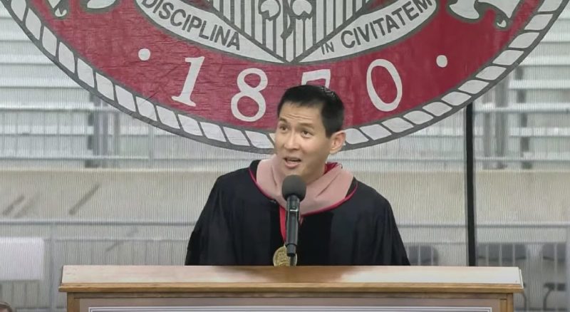 The person chosen to deliver a speech to the gathered students, families, and other attendees was Chris Pan.