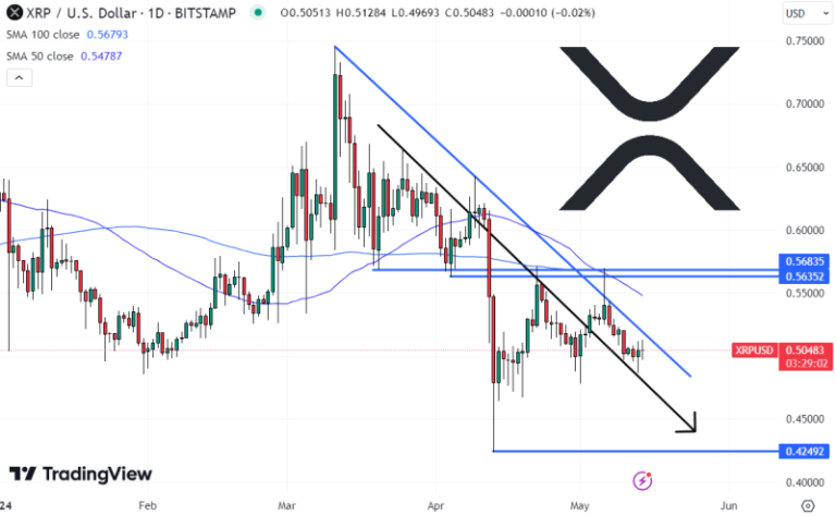 The XRP price has been in a downtrend since its March highs and could soon retest April lows. Source: TradingView