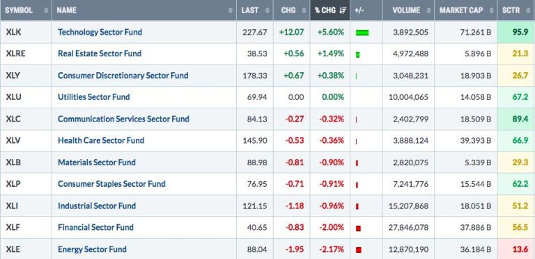 Technology (XLK) has been leading the stock market higher over the past week and month. Here are the numbers: