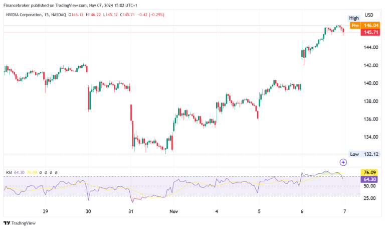 Most interestingly, on the 30th and 31st of October, the price sharply fell, followed by a dip of around 132.12, which turned out to be a major positive factor. The stock has recovered so powerfully. Hence, it can be seen. During the last few trading sessions, the stock price of NVIDIA has been increasing, hitting a high mark of 146.22 on November 7th.