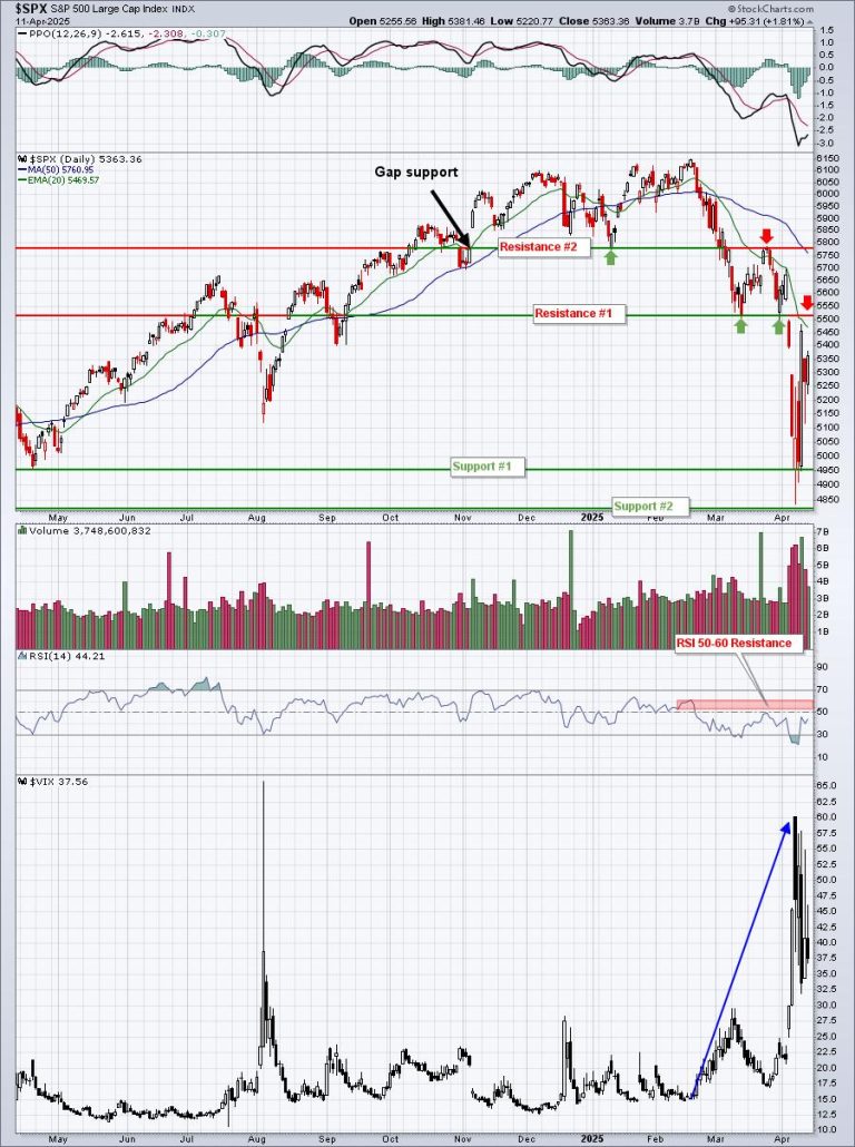 The chart pattern during Q4 2018 was quite similar. The VIX more than tripled from under 12 to above 36. The VIX also more than tripled in 2025, after starting from a much higher level near 15. In both 2018 and 2025, that initial selling episode saw a drop of roughly 10% before consolidating. Then the next drop was another 10% or so. We don’t know if the selling for 2025 has ended, though, as that’s the wild card.